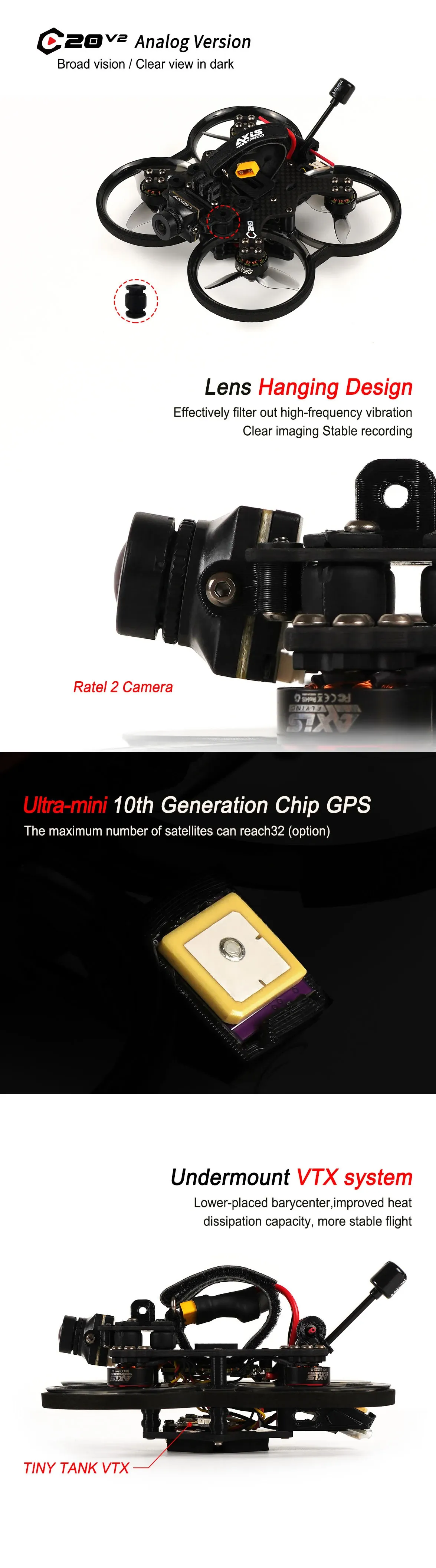 - Axisflying Cineon C20 V2 / 2 Inch Sub250g Analog / RunCam Link Fpv Drone-4S